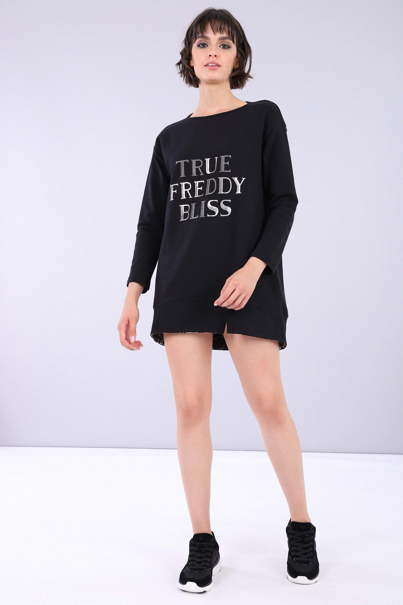 FREDDY Abito Nero Comfort con Interno doppiato Animalier e Strass