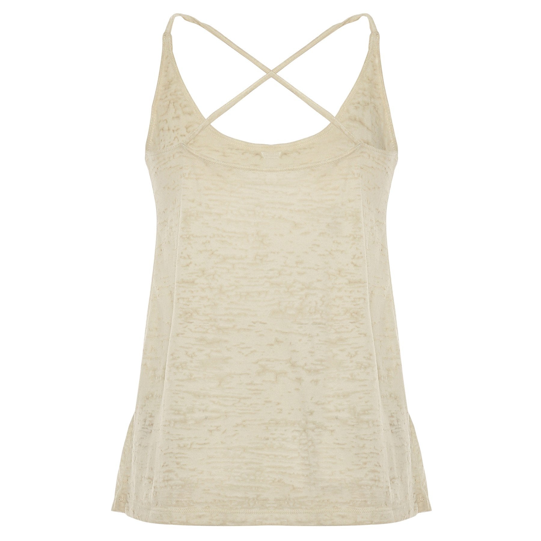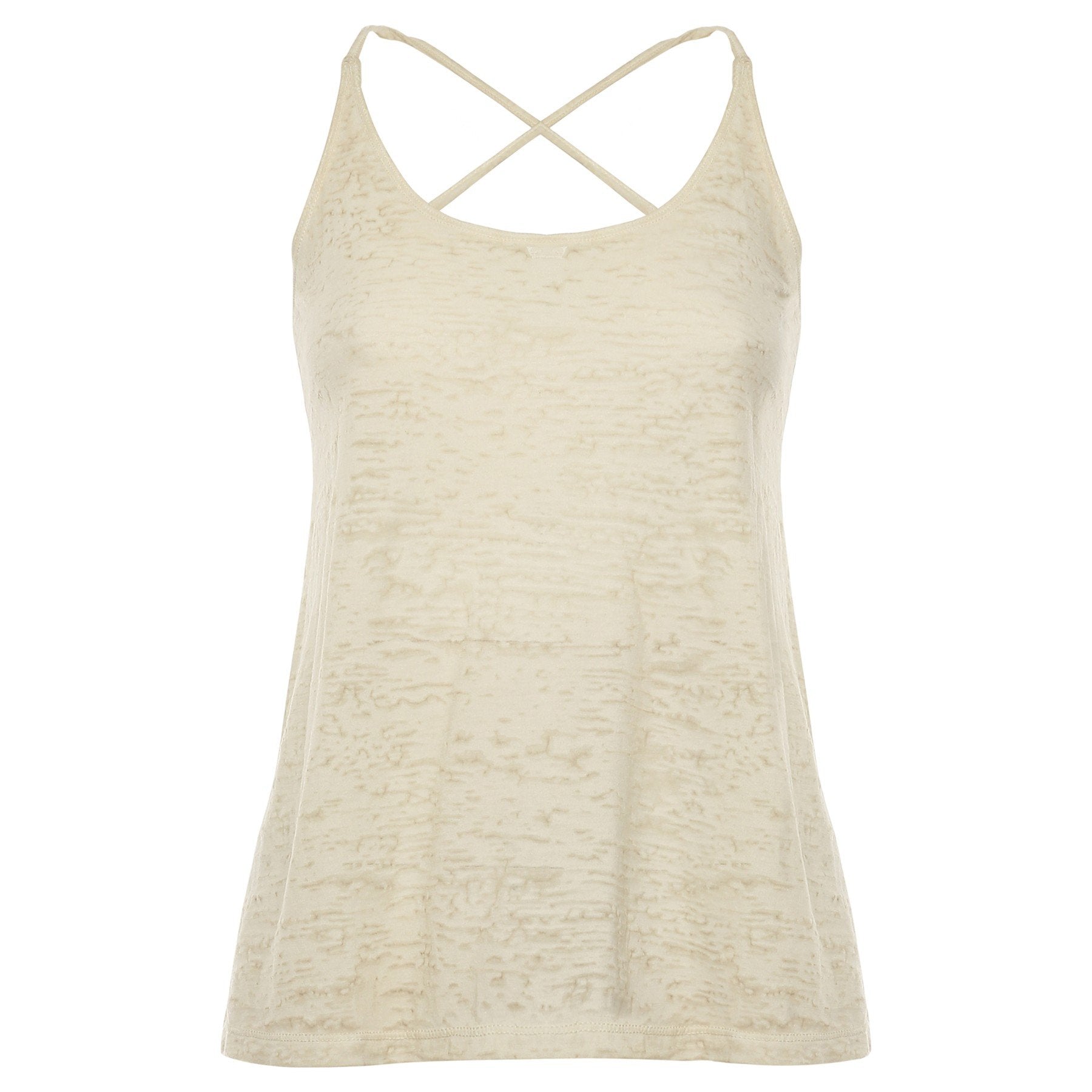 Canotta collezione Academy in jersey devoré con spalline incrociate Vestibilità: comfort Tessuto: Jersey Devoré Scollo: tondo, ampio sul retro Spalline: sottili, con incrocio sul retro Fondo: leggermente svasato Caratteristiche: Il tessuto devoré da un effetto semi-trasparente Tessuto tinto in capo Collezione: Academy è una collezione dalle vestibilità morbide, ispirate al mondo della danza. Realizzata interamente con tecnica di colorazione tinto in capo, che dona un aspetto used alla collezione, è impreziosita da applicazioni di paillettes ed inserti in pizzo.