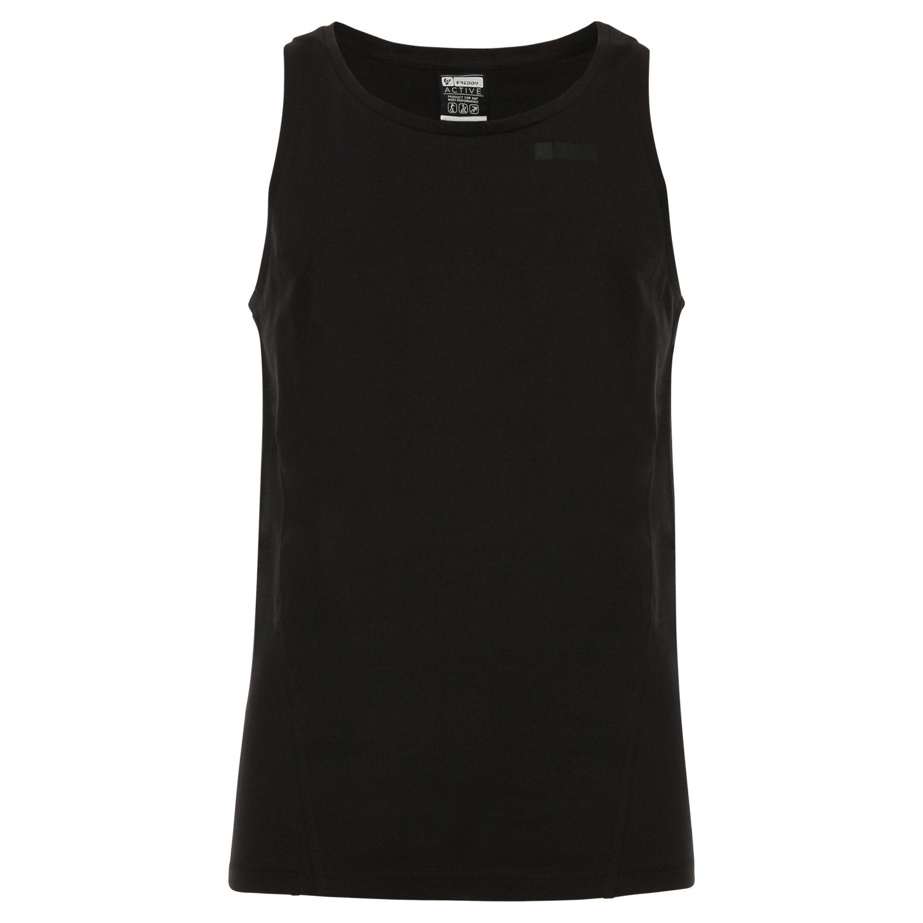 Canotta Collezione Basic Cotton Man in jersey leggero di cotone misto elastane Vestibilità: regular Tessuto: Light Stretch Jersey Scollo: regular Maniche: no Fondo: dritto Caratteristiche: Cuciture a pannello sul fronte Piccolo logo No-Logo sulla spalla Collezione: Basic Cotton, capi iconici Freddy dallo stile basic e pulito in tessuti cotonieri