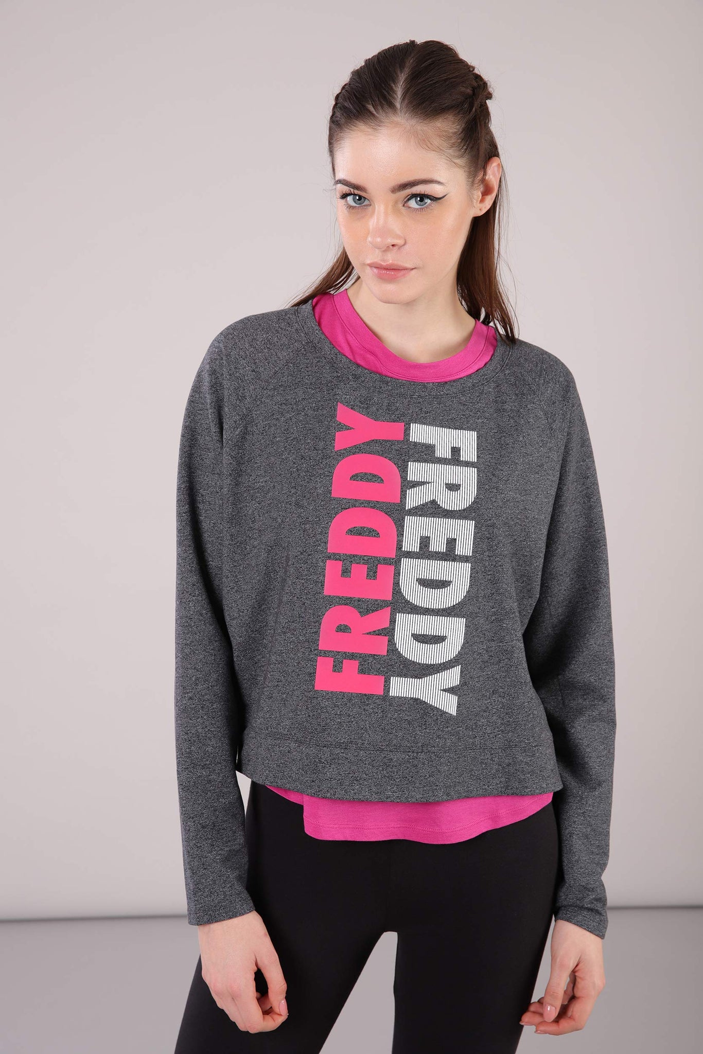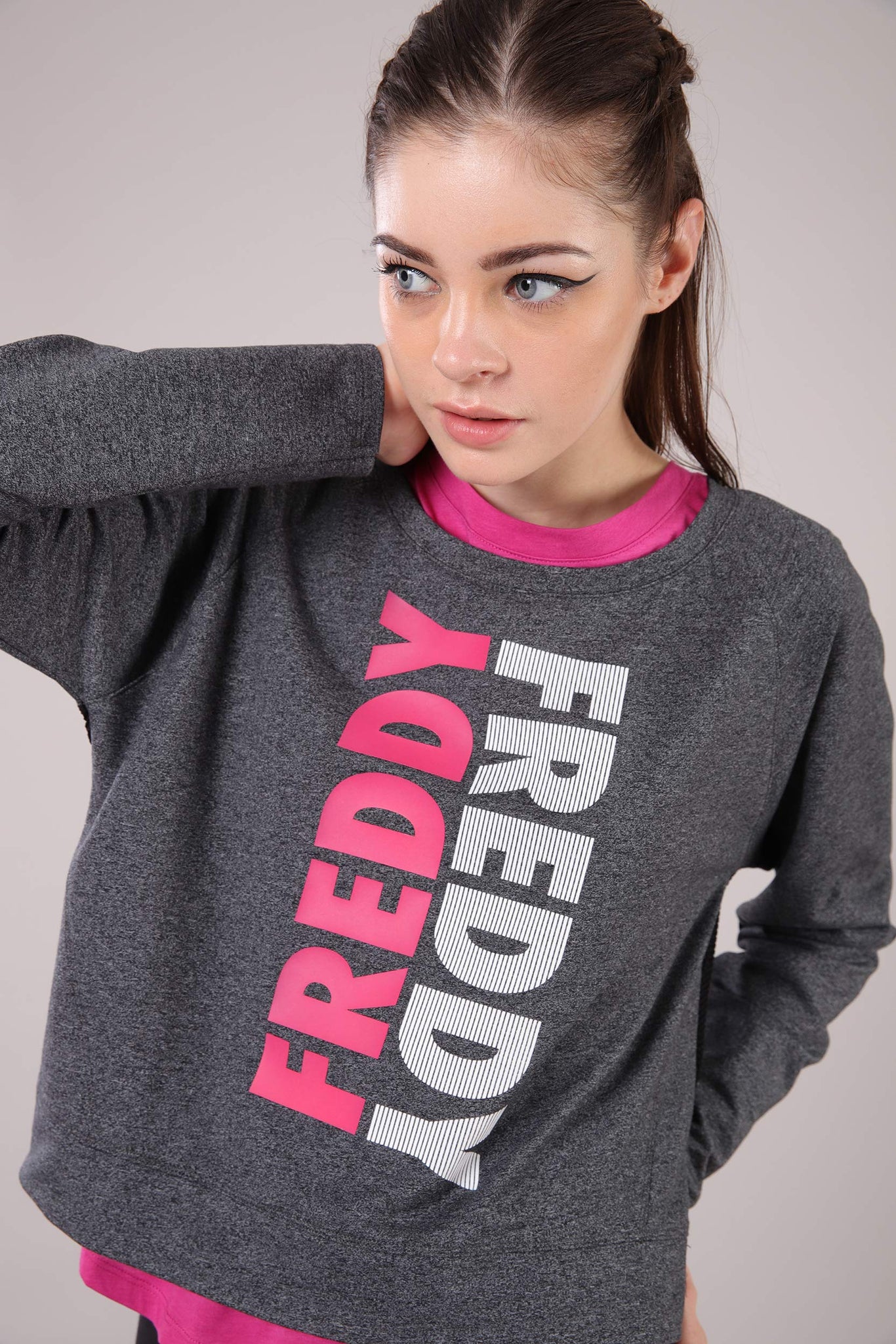 Felpa girocollo corta in finitura melange che aggiunge un tocco ricercato al design tecnico. Realizzata in cotone con trattamento French Terry per un effetto morbido e vellutato all'esterno e spugnoso all'interno. Agevola il comfort e le prestazioni grazie alla linea corta e alla vestibilità ampia. Per lo sport e il tempo libero, ma soprattutto per attività fisiche che richiedono libertà di movimento come la danza, lo yoga e la ginnastica.