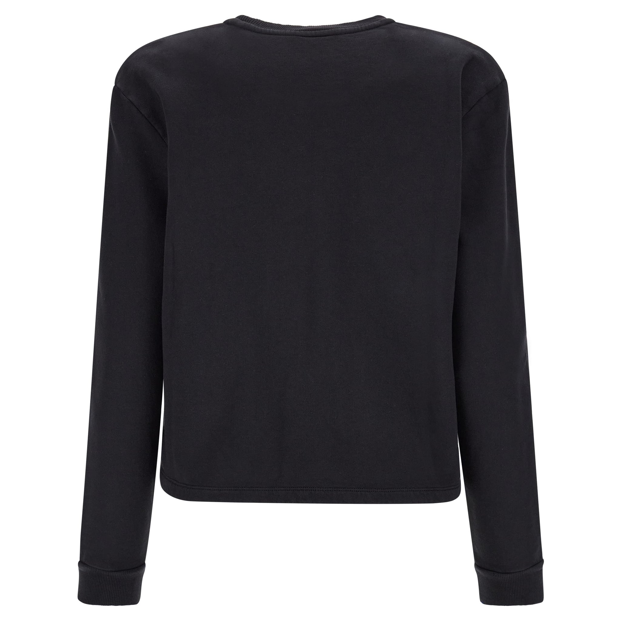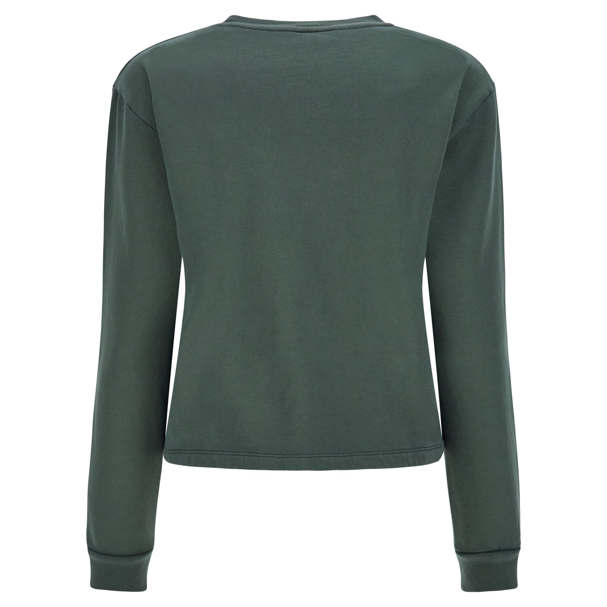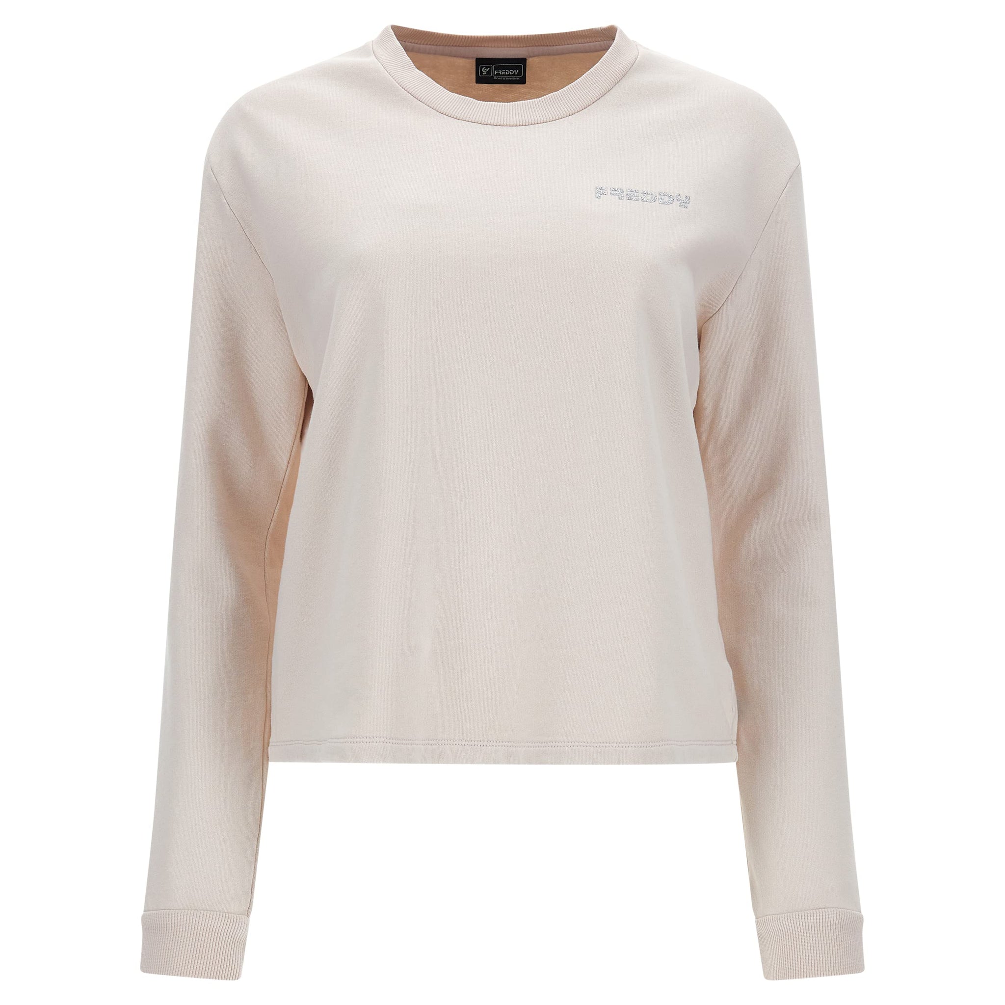 Felpa cropped con vestibilità comfort perfetta per le tue attività sportive e per il tempo libero dinamico. Il modello è realizzato in avvolgente felpa garzata tinta in capo e ha scollo a girocollo in costina, maniche lunghe con polsini in costina e logo Freddy in glitter sul petto. Il design corto in vita si intreccia con la morbidezza del tessuto nel donare comodità e ampiezza di movimento in ogni occasione.