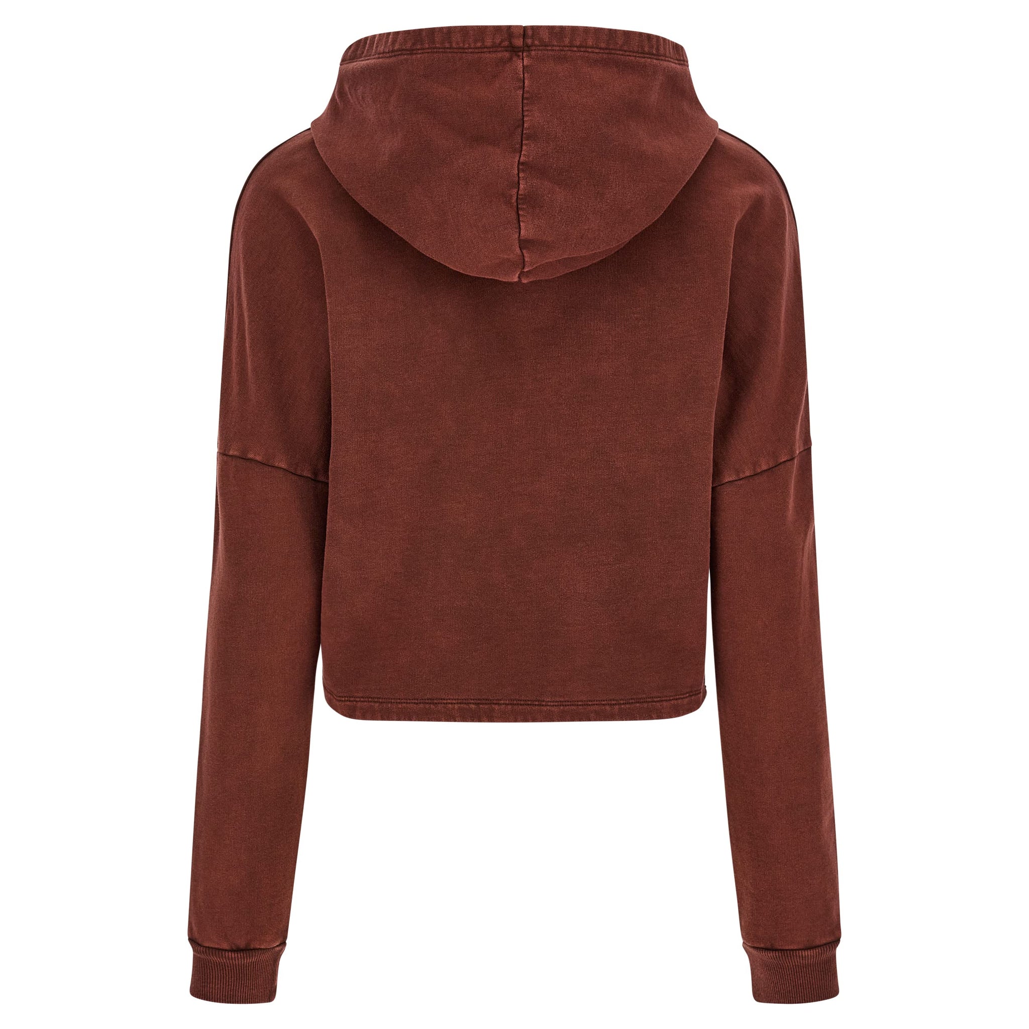 Felpa cropped con vestibilità comfort ideale per l'attività sportiva e per il tempo libero dinamico. Il modello è realizzato in avvolgente felpa garzata tinta in capo con effetto used ed ha cappuccio, maniche lunghe con spalle scese, polsini in costina e logo Freddy glitter sul fronte in posizione centrale. Il design corto in vita si intreccia con la morbidezza del tessuto nel donare comodità e ampiezza di movimento in ogni occasione.