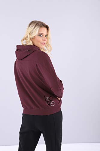 Il capo ha il collo alto con cappuccio chiuso con una maxi coulisse, ed è decorato al fianco posteriore da una piccola grafica lettering stampata.