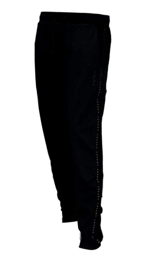 Pantaloni sportivi in felpa spazzolata elasticizzata con banda laterale nera decorata con logo Freddy ripetuto in bianco sulle lunghezze. Hanno tasche interne, fondo a polsino e coulisse in vita con micro borchie in tono colore. A completare i numerosi dettagli di stile è un piccolo logo Freddy in glitter sul carré posteriore. Capo comodo e piacevole da indossare particolarmente indicato per le attività sportive all'insegna del movimento come la ginnastica e il pilates grazie alla flessibilità del tessuto e al suo design con coulisse in vita e fondo a polsino che aumentano la tenuta durante i movimenti.
