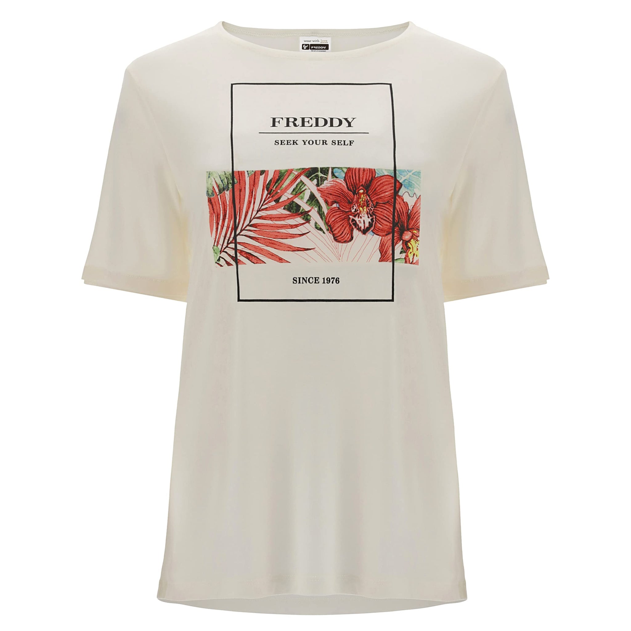FREDDY - T-Shirt Comfort in Fibra Vegetale con Stampa Tropical