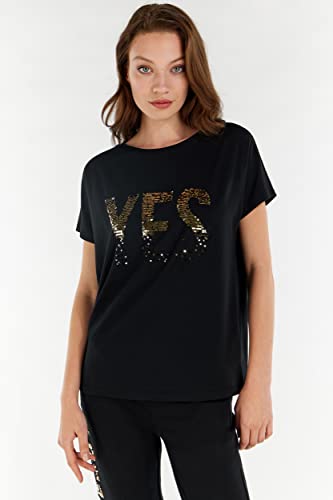Indossa anche tu il capo senza tempo rivisitato e modernizzato di freddy: la T-shirt Donna Stampa Oro. La t-shirt freddy è realizzata in jersey leggero elasticizzato, ha il girocollo rotondo e le maniche cortissime. La stampa che caratterizza questa t-shirt in cotone è formata da pailettes reversibili, ottima per non farti passare inosservata anche abbinata ad un semplice jeans. Materiale: 94% Cotone, 6% Elastane Stagione: Autunno-Inverno 2021/22 Caratteristiche: - Jersey leggero elasticizzato - Comfort fit - Girocollo rotondo - Maniche cortissime - YES in pailetes reversibili - Logo freddy Cura del prodotto: - Lavaggio Delicato Max 30° - Non Candeggiare - Non Asciugare A Tamburo - Stirare A Rovescio A Bassa Temperatura (Max 110°) - Non Lavare A Secco