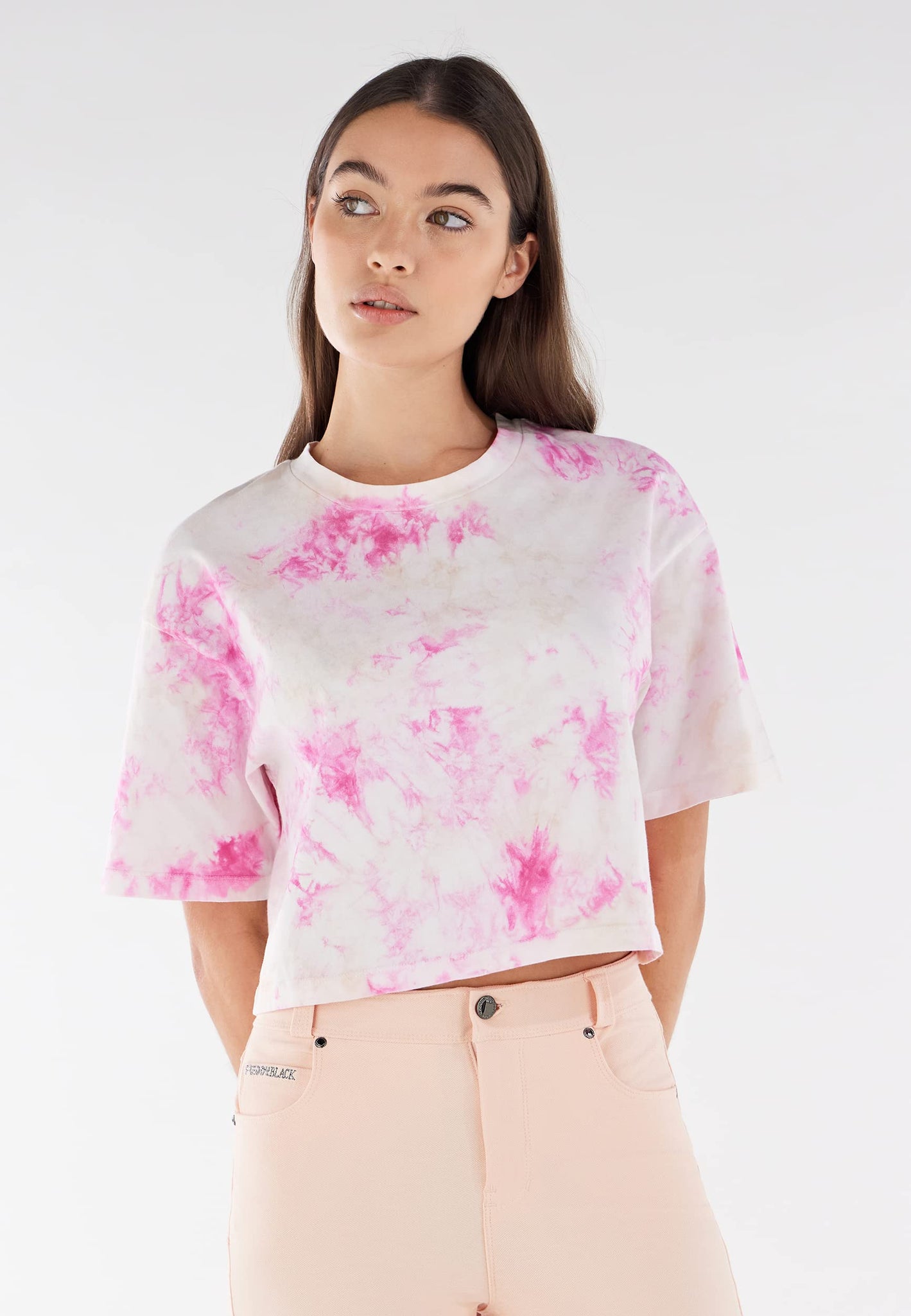 • T-shirt cropped comfort tye-die con maniche a kimono