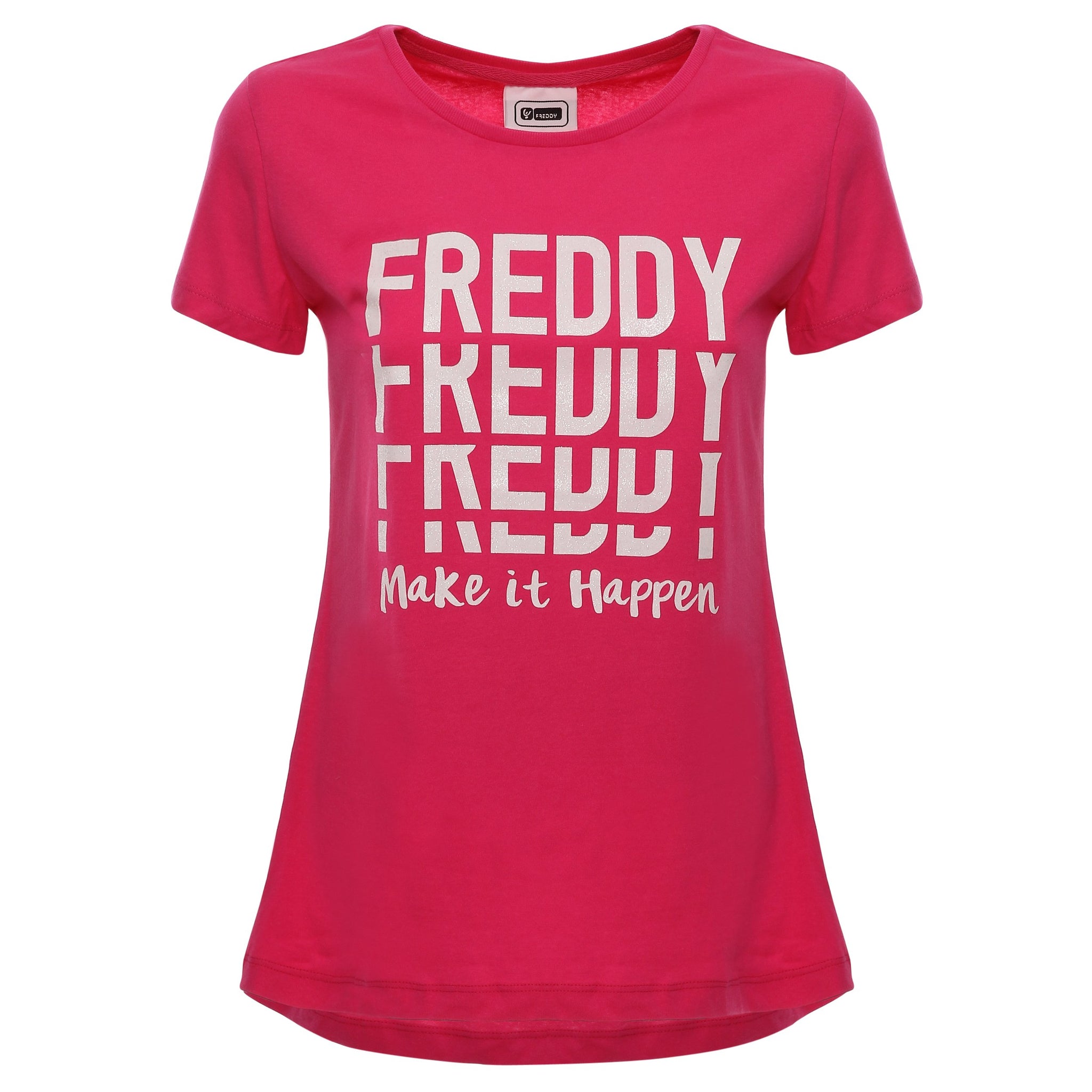FREDDY T-SHIRT DONNA IN TESSUTO 100x100 COTONE. MANICA CORTA, GIROCOLLO, STAMPA SCRITTA DAVANTI GLITTERATA. SUL DIETRO FONDO PIU' LUNGO LEGGERMENTE STONDATO. VESTIBILITA' REGULAR. CUCITURE RIMARCATE TONO SU TONO. DISPONIBILE DALLA TAGLIA XS ALLA L IN DUE COLORI. LAVARE A 30. NON STENDERE AL SOLE, STIRARE AL ROVESCIO.