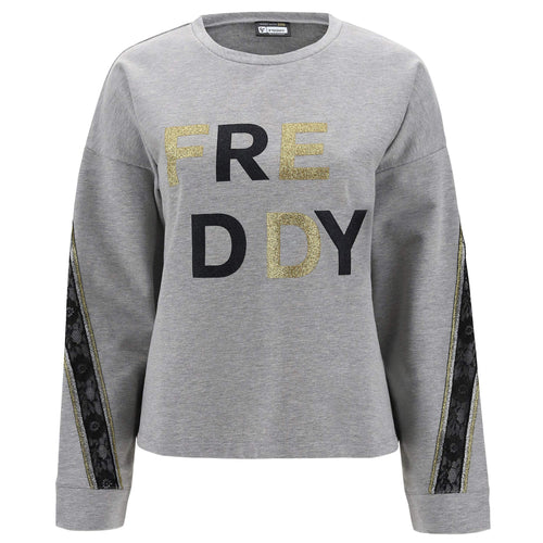 FREDDY Felpa in Cotone 100% con Stampa sul Fronte E sulla Manica