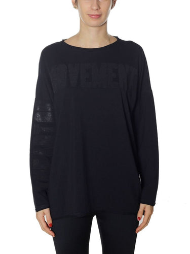 FREDDY - Felpa Leggera con Spacco Posteriore E Raso Floreale, Nero, Medium