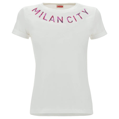 FREDDY T-Shirt Manica Corta da Bambina con Stampa a Contrasto - White - 10 Anni