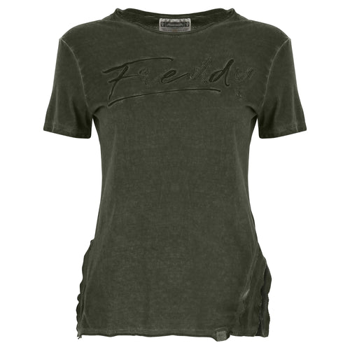 FREDDY T-Shirt a Maniche Corte con Spacchi in Costina - Deep Depths Cool Dyed - Medium