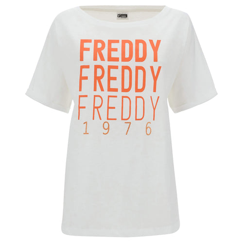 FREDDY T-Shirt da Donna in Cotone Fiammato con Maxi Stampa Frontale - White - Extra Large