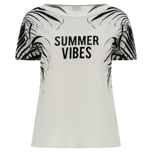 FREDDY - T-Shirt Comfort in Jersey Modal Spalle con Stampa Floreale, Bianco, Medium