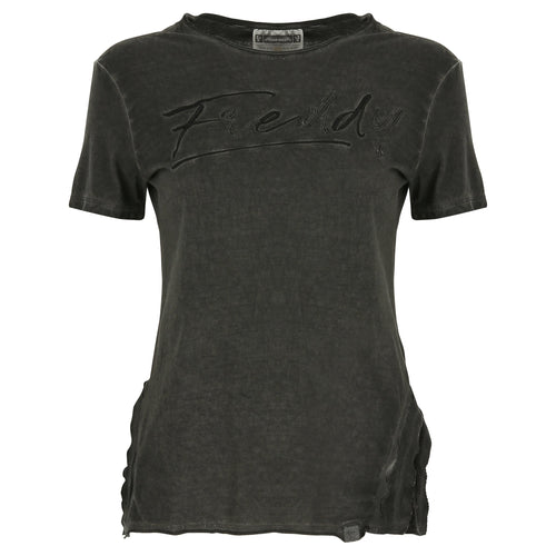 FREDDY T-Shirt a Maniche Corte con Spacchi in Costina - Cool Dyed Black - Large
