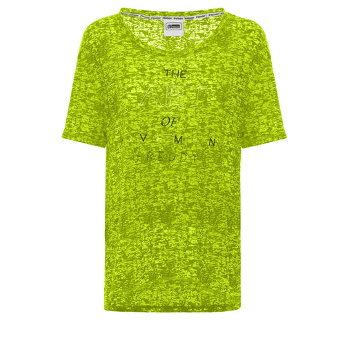 FREDDY T-Shirt Morbida in Jersey DEVORÉ con Stampa E Strass Verde Fluo