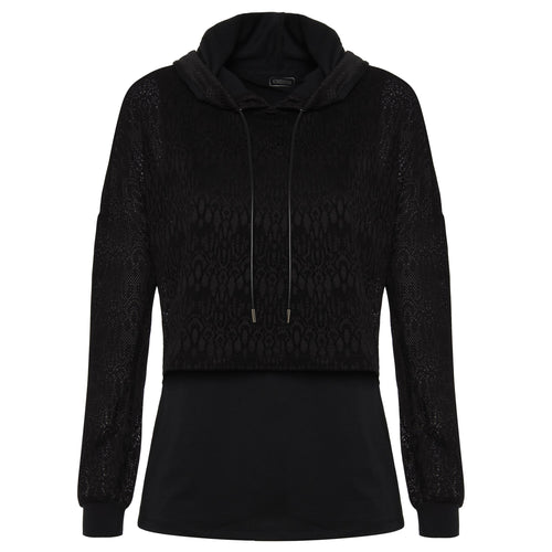 FREDDY Felpa Donna Pizzo Tech Black Effetto 2 in 1 con Cappuccio
