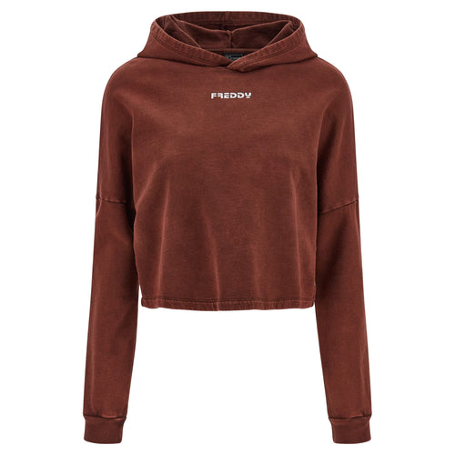 FREDDY - Felpa Cropped Tinta in Capo Effetto Used con Cappuccio