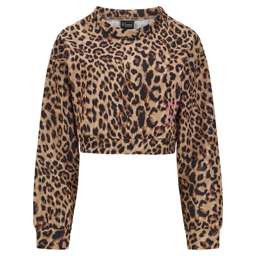 FREDDY - Felpa Cropped Girocollo Animalier con Lettering su Un Fianco