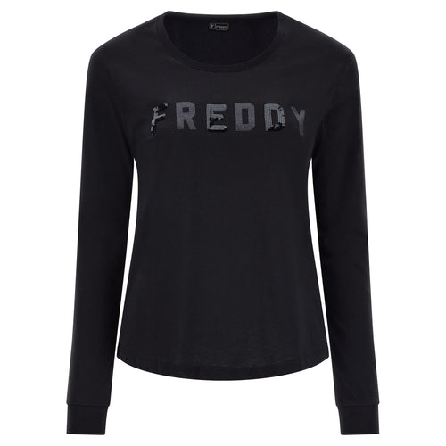 FREDDY - T-Shirt Comfort Manica Lunga E Grafica Paillettes