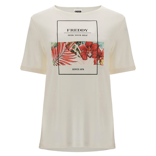 FREDDY - T-Shirt Comfort in Fibra Vegetale con Stampa Tropical