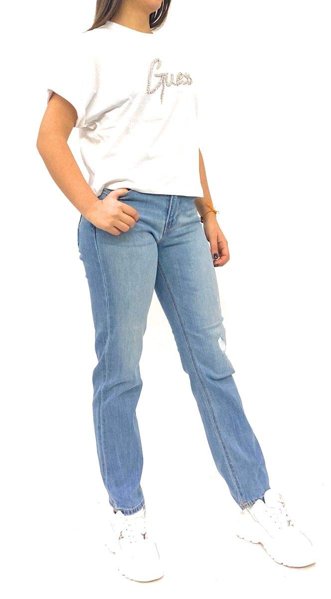 W01A35 D3Y42 - Guess jeans. Toni: il BLU. Colore denim: denim chiaro. taglio: magro, allungare. Logo: cucito. Formato: alta. Tasca: 5. Fermaglio: abbottonarsi + chiusura. Lavaggio: Lavaggio macchina. Consiglio: prendi la tua solita taglia. Info: Le nostre dimensioni sono espresse in Stati Uniti, vi riferite alla griglia di dimensione. Materiale: 70% Di cotone, 29% Poliestere, 1% Elastan.