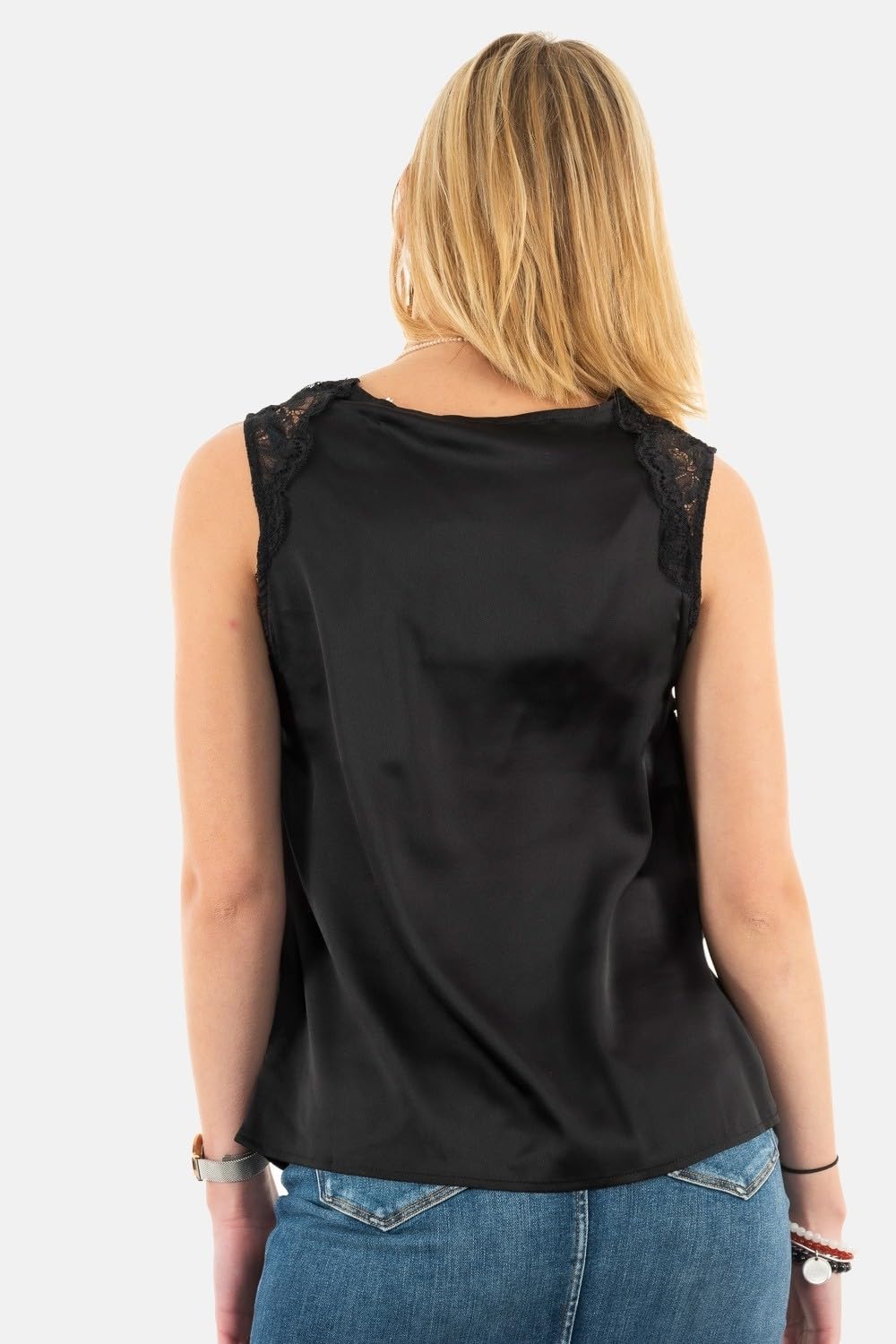 Guess top in raso scollo a cappuccio regular Donna W3RH55WD8G2-G011. Top in tessuto sintetico. Scollo a cappuccio. Senza maniche. Vestibilità regular. COMPOSIZIONE TESSUTO PRINCIPALE: 100% Poliestere; LAVAGGIO: Lavaggio a mano in acqua fredda. TESSUTO: Raso. DETTAGLI TESSUTO: Inserti in pizzo. - Rivenditori ufficiali.