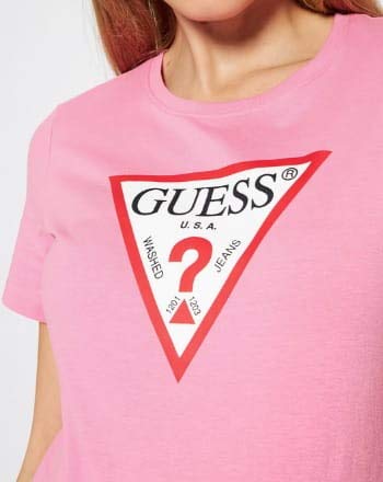 GUESS T-shirt donna maglia manica corta rosa scollo rotondo Materiale: 100% cotone. Colore: rosa. Tipo di scollo: rotondo. Vestibilità: regular fit. Brand: GUESS. Codice:W1RI00I3Z11-G6N3