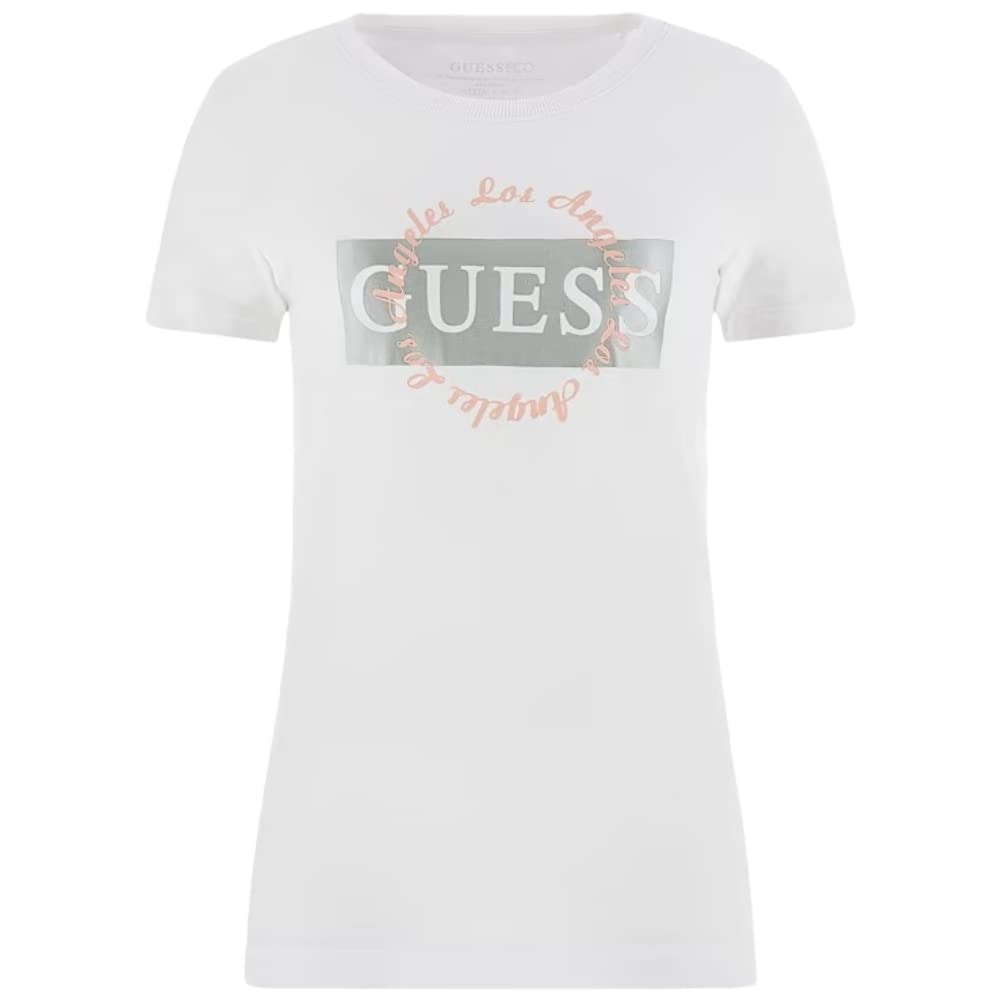W3GI38 J1314 - Guess jeans. Toni: i BIANCHI. taglio: regolato. Scollo: arrotondato. breve: cortas. Logo: stampa. Specificitàs: éco friendly. Materiale: 95% Di cotone, 5% Elastan. Consiglio: prendi la tua solita taglia. Lavaggio: Lavaggio macchina.