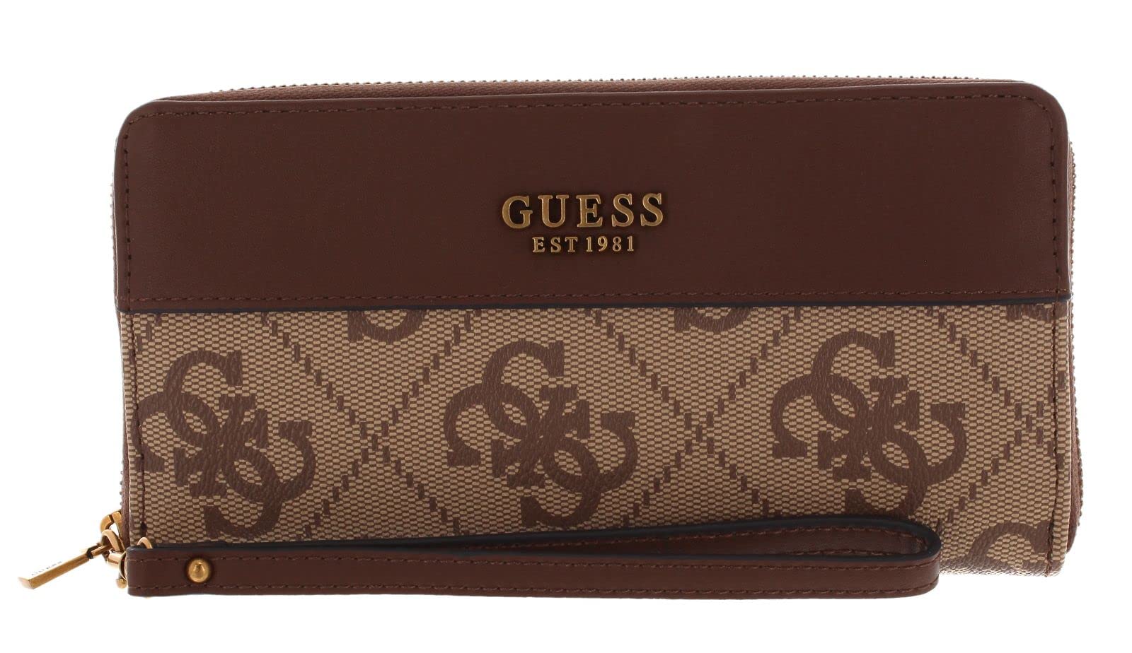 Dati borsa:Dimensioni: larghezza circa 21 cm, altezza circa 11 cm, profondità circa 2,5 cmPeso: circa 250 gColore: Brown Logo / Stone (marrone scuro / marrone chiaro / rosa)Sul lato sinistro 1 cinturino a mano rimovibile: circa 18 cmMateriale: 100% poliuretanoContenuto della fornitura: GUESS borsa con etichetta in GUESS scatola regalo, 1 x cinturino a mano