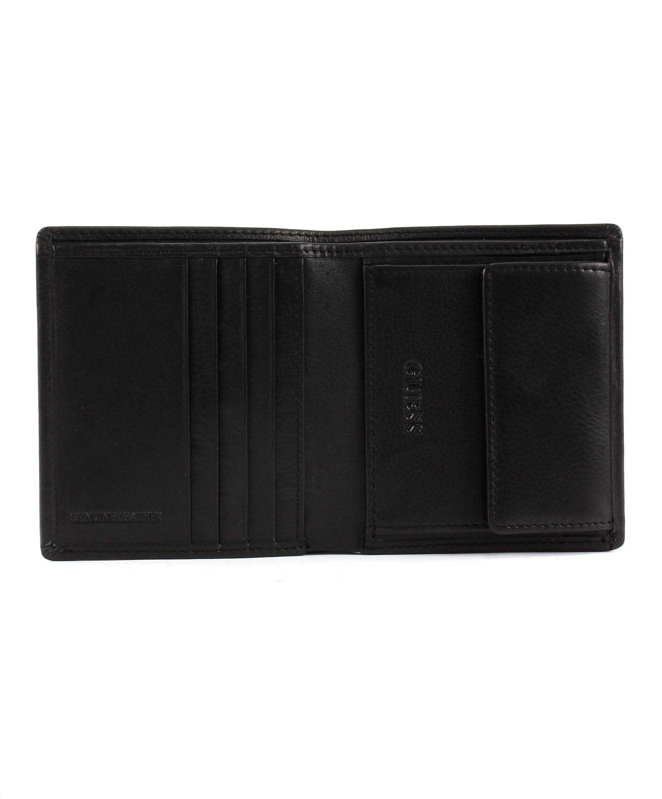 GUESS New Boston Small Billfold Coin Wallet Black Dati: o Materiale: Esterno in 100% pelle, all'interno 100% poliestere o Dimensioni: Larghezza circa 9,5 cm, altezza circa 10,5 cm, profondità circa 1,5 cm o Colore: Nero (Black) o Fabbricante: GUESS
