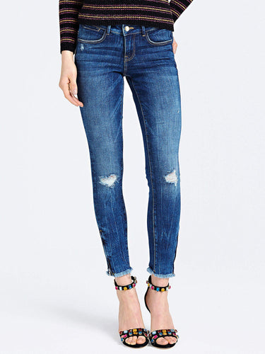 Guess Jeans Donna Jegging Denim Used Abrasioni Cerniere Blu