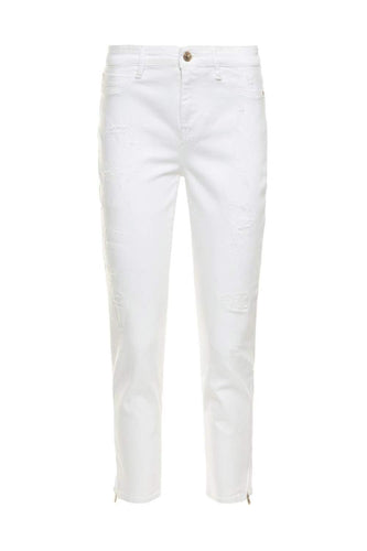 GUESS JEANS - Jude Jeans Donna a Vita Alta Strappi e Zip in Fondo White Bianco