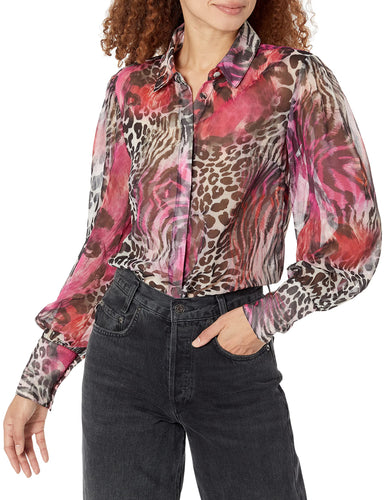 Guess Camicia Donna Blusa LS Raven Chiffon Top Animalier Multicolore ES23GU43 W3RH78WDWT2