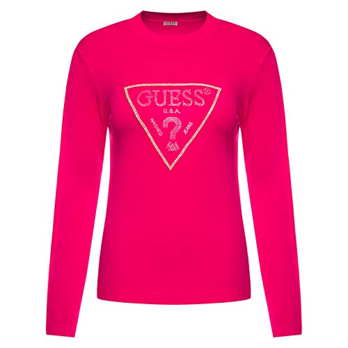 Guess Maglia Girocollo Naomi W01R92 Z2760 con Logo Colore Rosa Fucsia