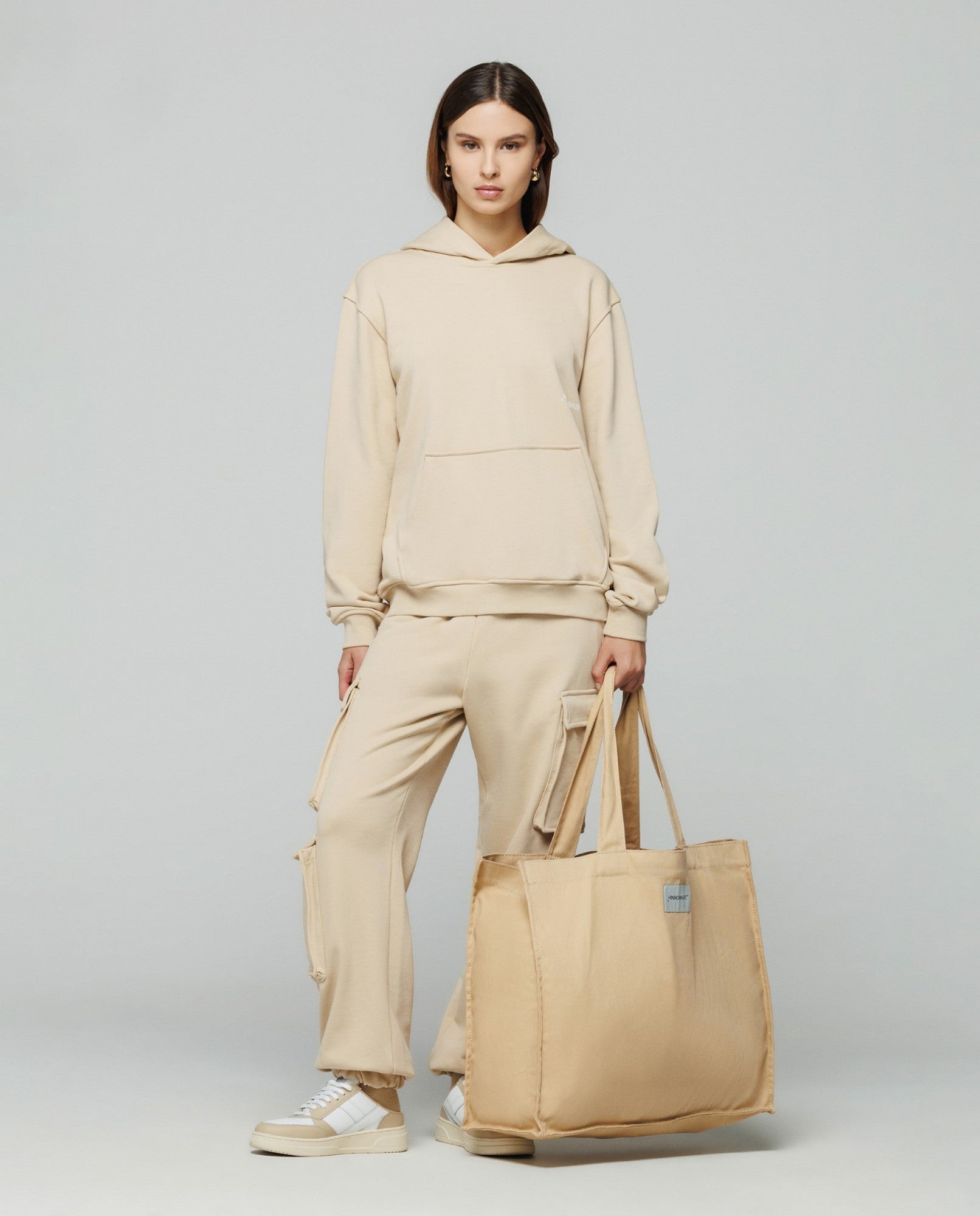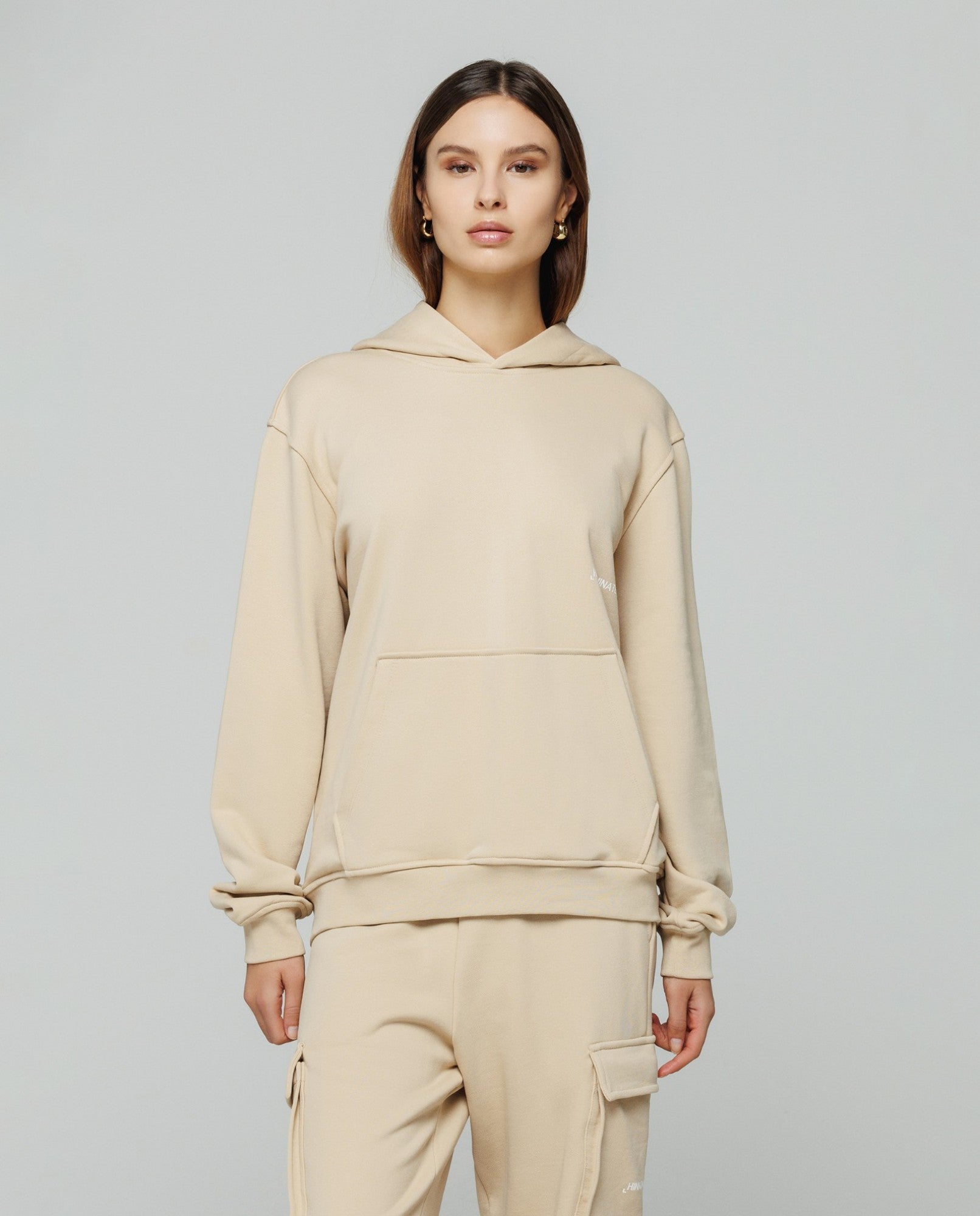 Felpa cappuccio basica con marsupio e stampa sul davanti
