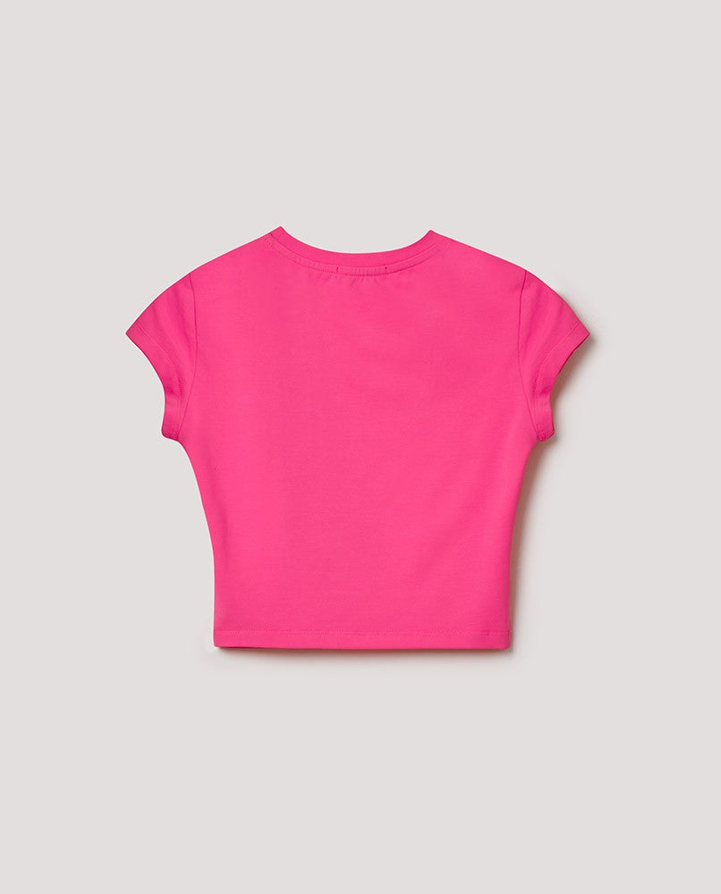 T-Shirt Mezza Manica In Bielastico Con Stampa Sul Davanti