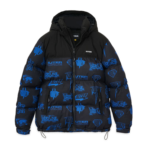 IUTER HORNS ALLOVER PUFF JACKET - Printed Puff Hood BLACK - Giacca Uomo BLACK