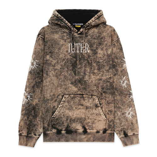 IUTER VALUE HOODIE - Screen Print BLACK Felpa Uomo con cappuccio tinta a mano con tecnica tradizionale marble
