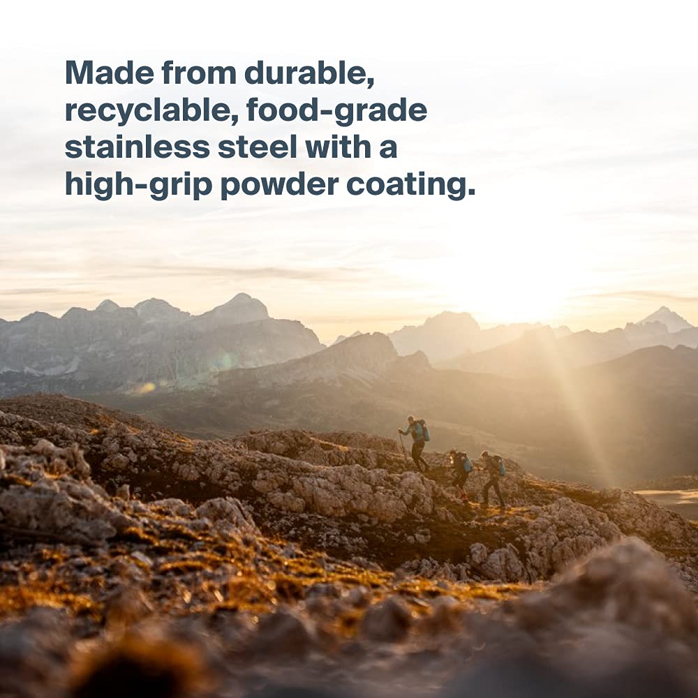 - Rinfresco allo stato puro: questa classica borraccia da 450 ml è l’alleato più affidabile quando si tratta di calmare la sete anche in quota; per di più, è ottima anche per le bibite gassate