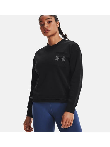 Under Armour, Rival Fleece Mesh Crew , Felpa, Nero, MD, Donna