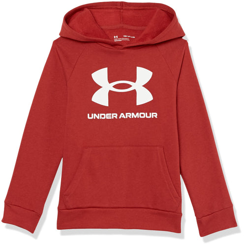 Under Armour Boys' Standard Rival Fleece Hoodie, (610) Stadium Red / / Onyx White, Youth Small