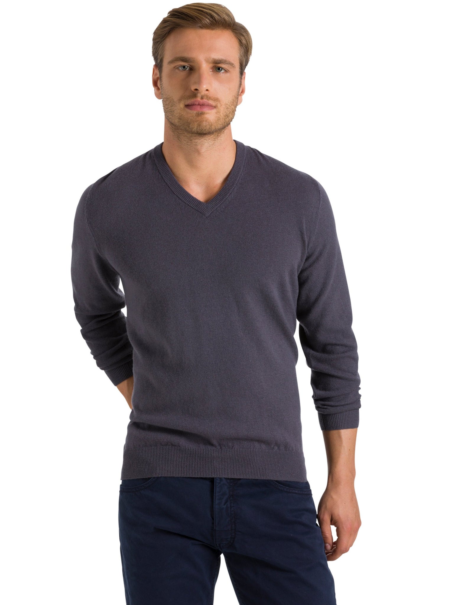 North Sails V NECK 12 GG maglia maglioncino uomo collo a V grigio piombo Lead